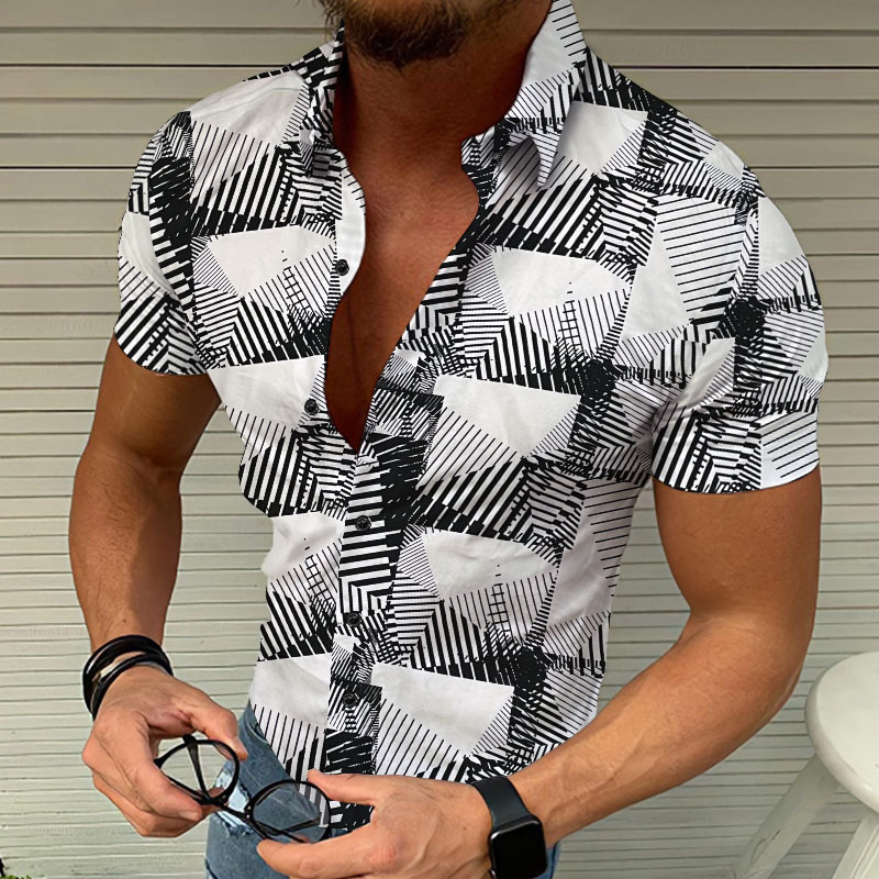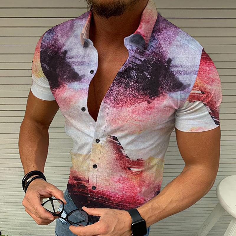 アマゾン速売通2022新型欧米国境を越えたビーチカジュアル男性ユーロプリント半袖シャツカーディガン