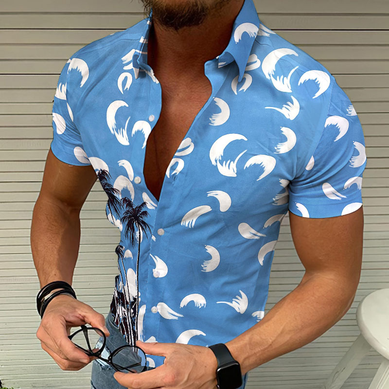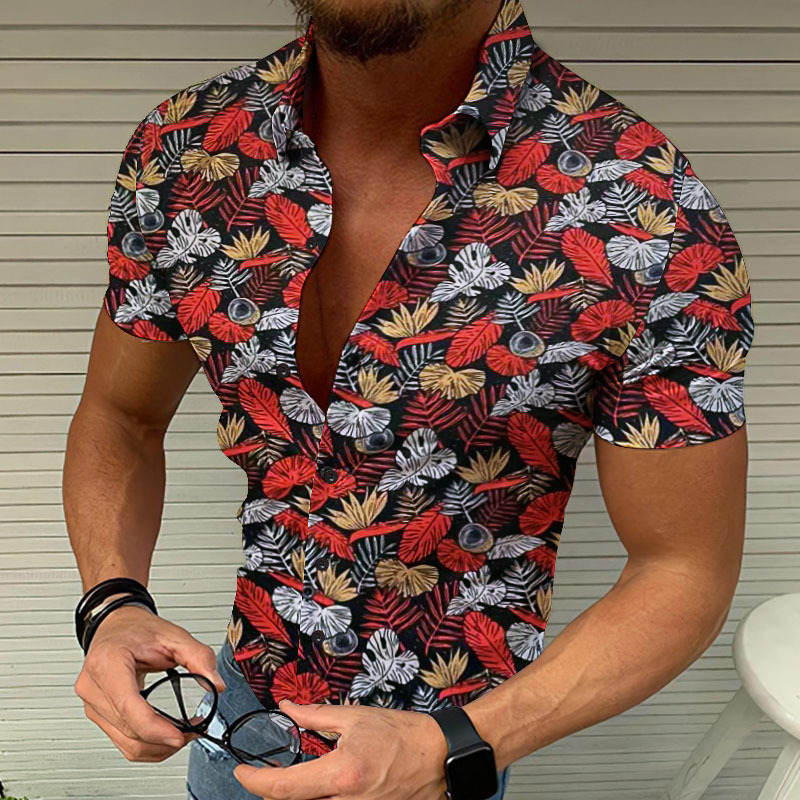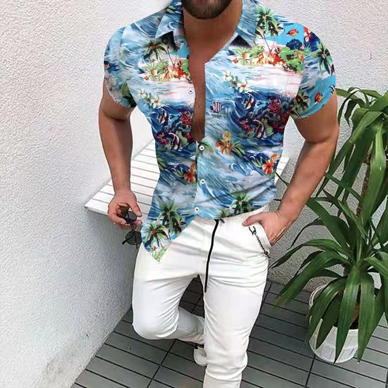 アマゾンクロスボーダー2022新型欧米ハワイビーチ男子プリント半袖シャツカーディガン