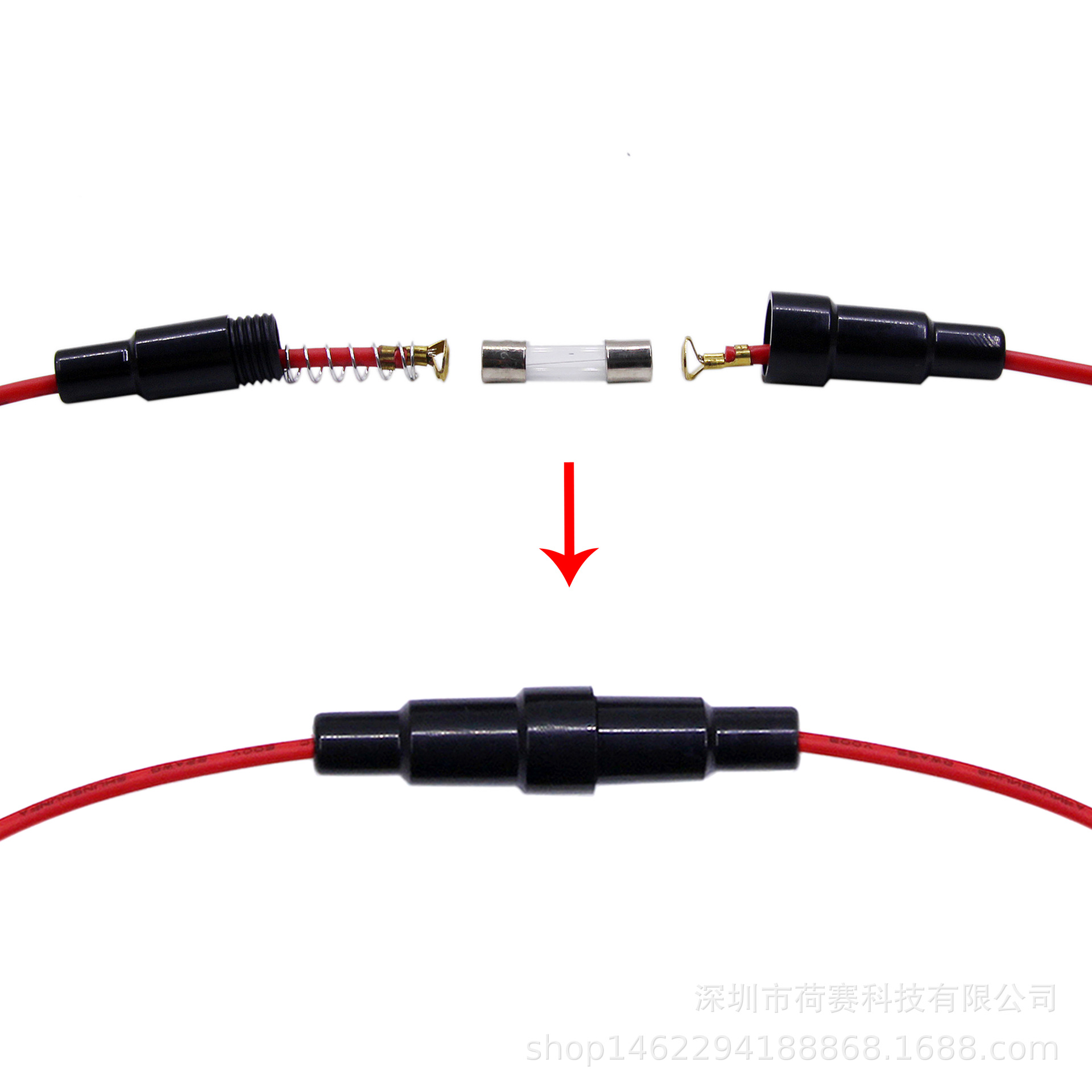 ワイヤー付きヒューズホルダー5x20mm 22 eva/ヒューズボックス/ヒューズスリーブ/ベース内バンドスプリング
