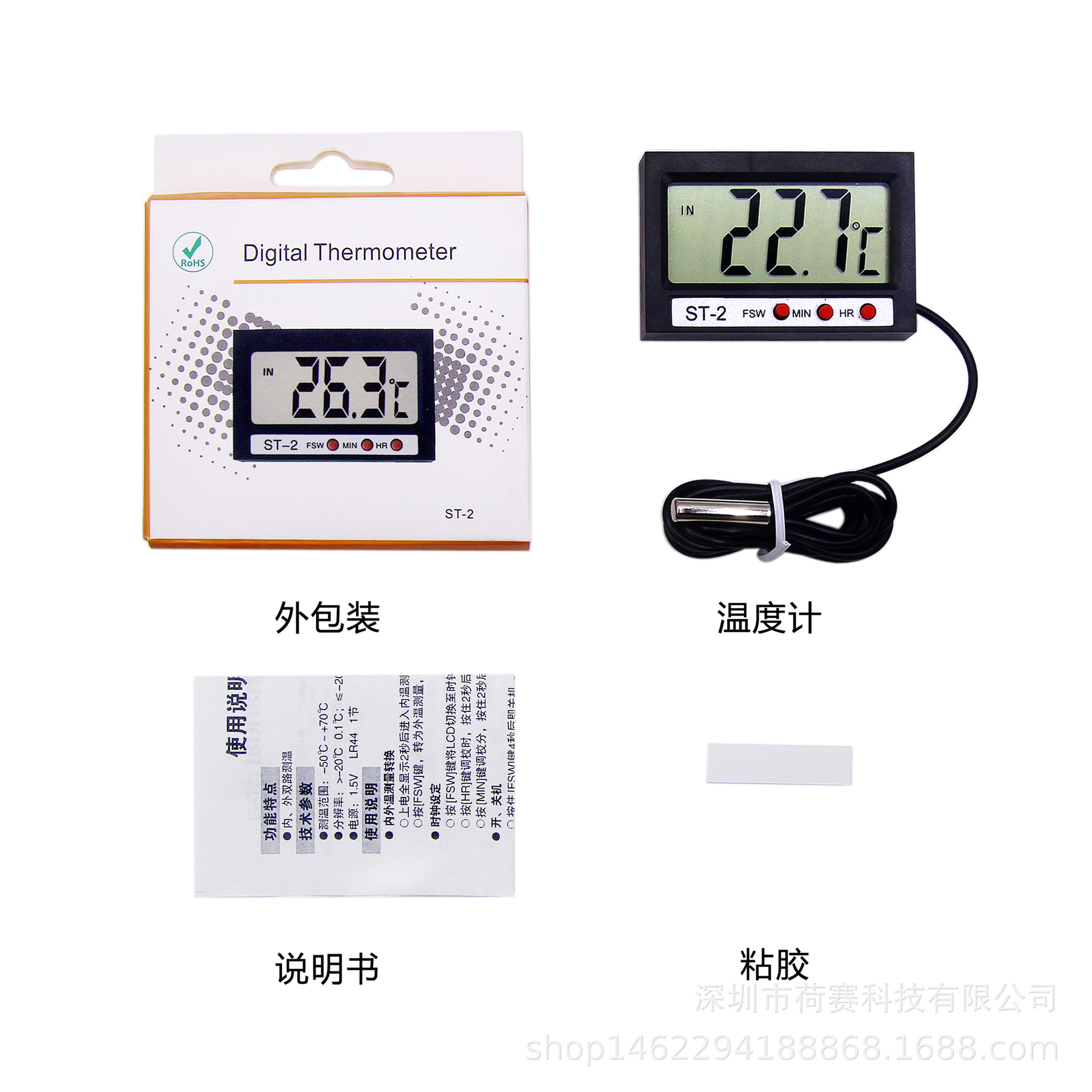 ST-2屋外温度計時計壁掛け式温度バンドプローブ高精度大画面電子デジタル温度計