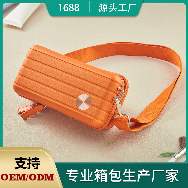 韩系化粧バッグ高级感可爱いハードシェルロゴ肩ひも斜めがけバッグ携帯高颜値大容量収纳バッグ