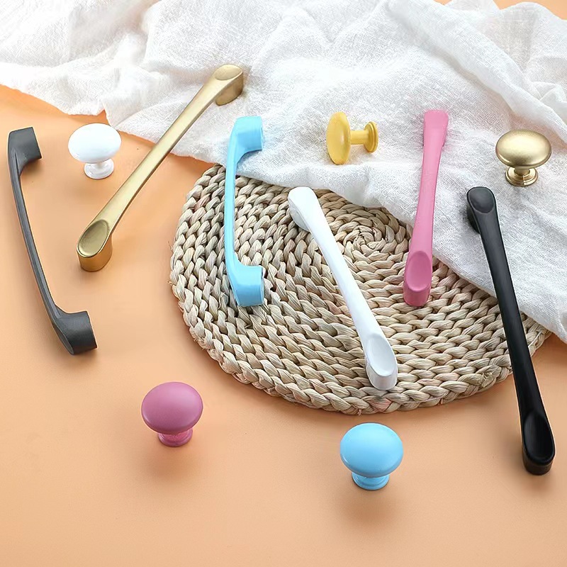 カラフル子供部屋漫画引き出しドアハンドルモダンシンプルピンクタンスキャビネットドアシングル穴ブルー黄色ハンドル