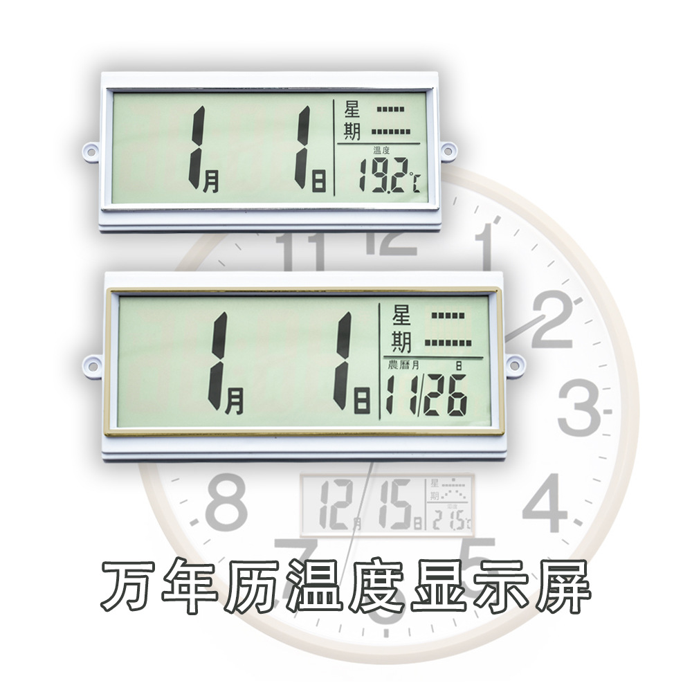 多機能lcd万年暦温度旧暦液晶ディスプレイ掛け時計ディスプレイモジュール金色銀色枠