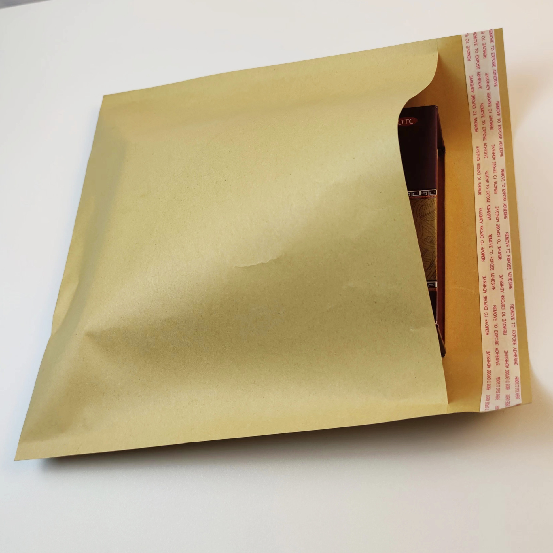 クラフト紙封筒包装袋の中にフィルム防水粘着テープ付き速達紙袋メーカーの現物が入っている