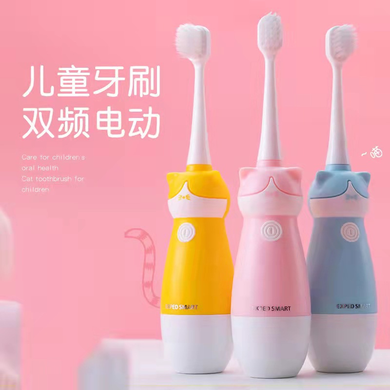 かわいい猫漫画子供用電動歯ブラシバッテリーモデル充電式柔らかい毛防水交換可能なブラシヘッド工場卸売ドロップシッピング