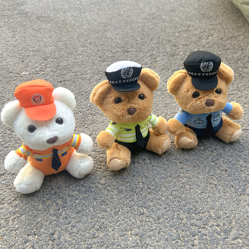 ネット赤かわいい萌え交通警官熊ストラップぬいぐるみ人形消防警察バッグ掛けキーホルダー人形