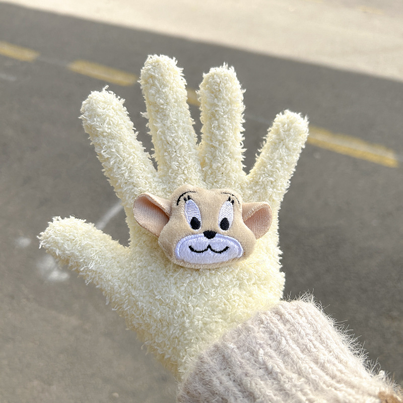 かわいいおかしなネズミチーズの柔らかいモチモチとした甘いサンゴのベルベットの5本の指の指の手袋の学生は冬に乗って保温します。