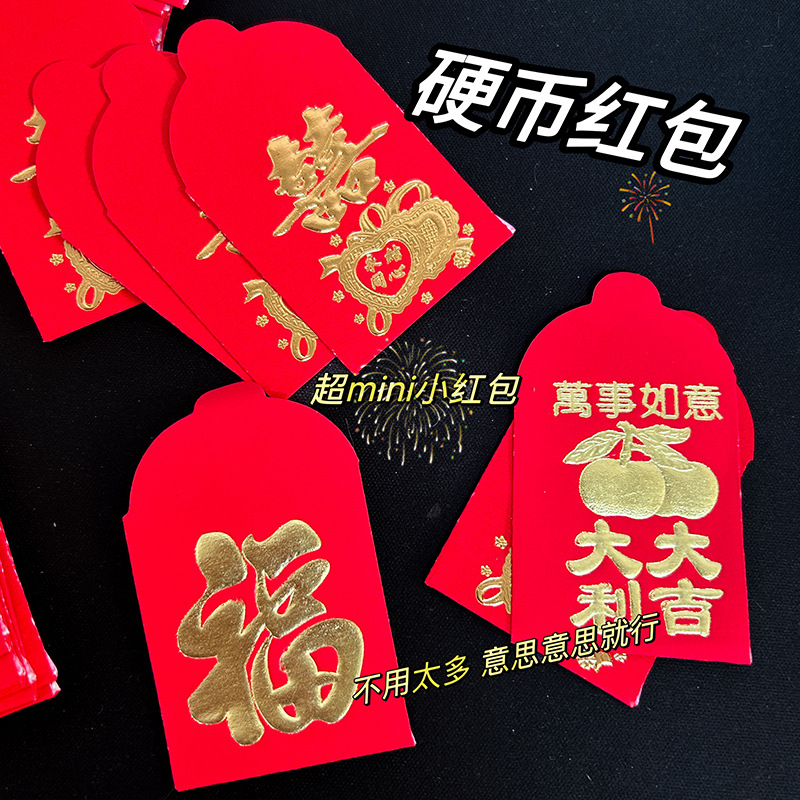新年のミニコインの赤い包みの福の字の結婚はベッドを押さえます。