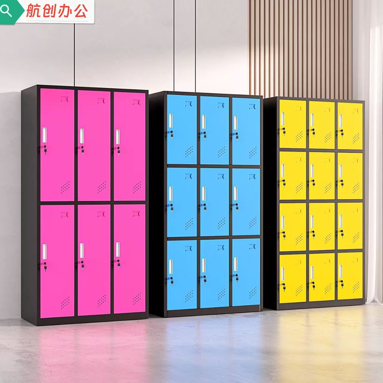 カラフルな従業員用更衣室用4ドア/6ドア鉄製キャビネット(鍵付き)、更衣室用、ジム用収納キャビネット