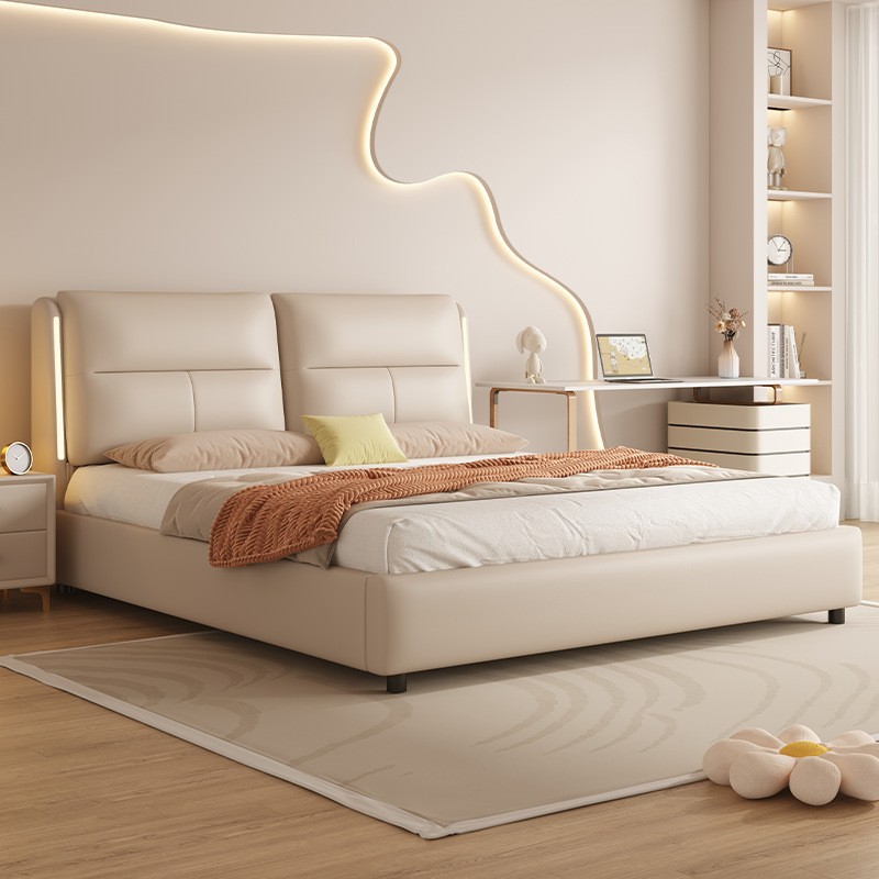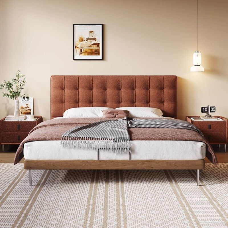 無垢材ベッド、自宅マスターベッドルーム、大型ベッド、布製ベッド、ダブルベッド、シンプル、米賃貸ベッド