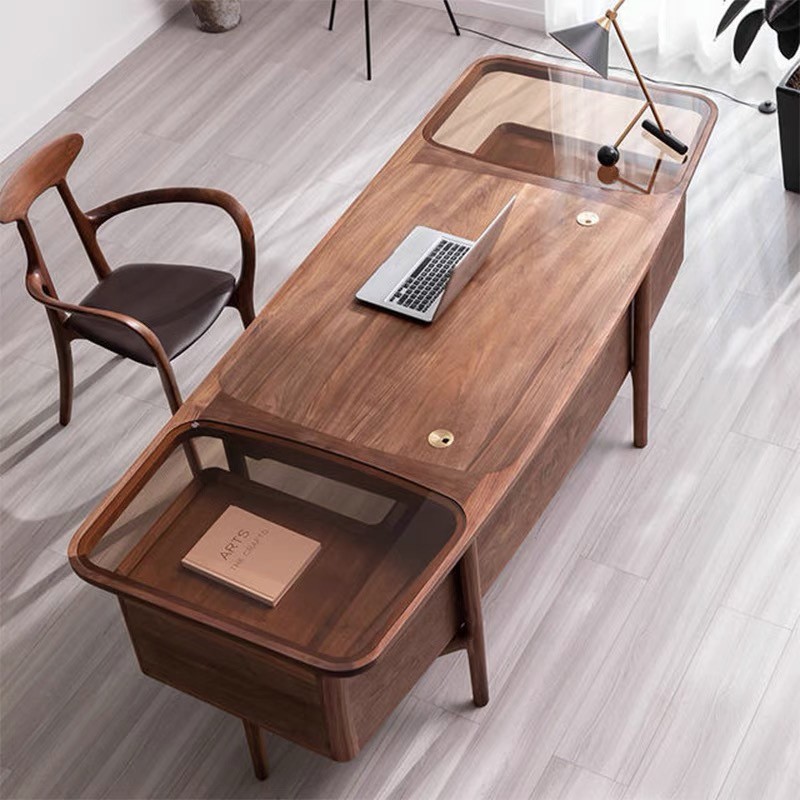 北欧のコンピュータデスクの黒い胡桃の木の机の引き出しの北米の現代の中国式の字の家庭の書斎の事務机