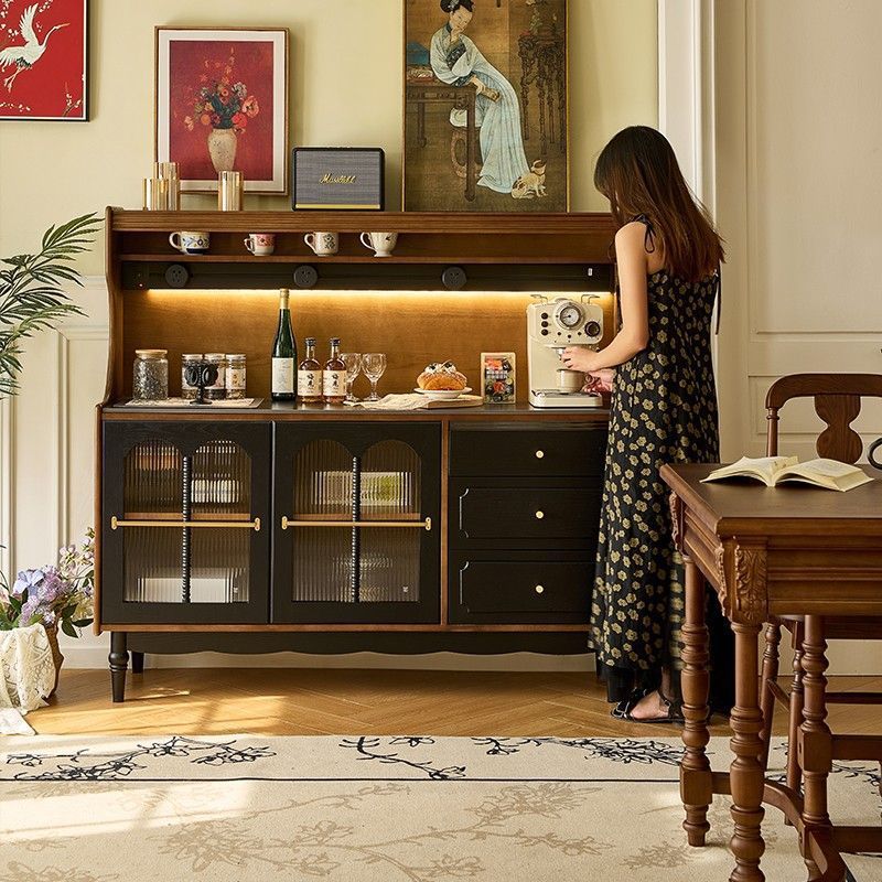 北米レッドオークホームレストランフレンチレトロサイドボードリビングルームアンティークスタイル無垢材収納キャビネット