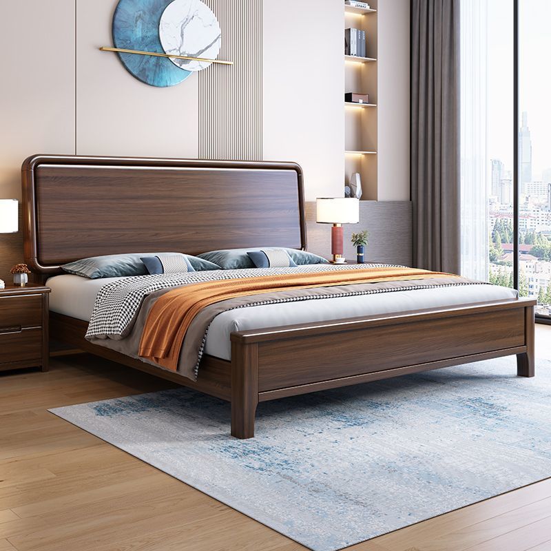 ゴールデンシルクサンダルウッド無垢材ベッド。メートルダブルベッド無垢材ベッド。メートルシンプルモダン中国風収納マスターベッドルームウェディングベッド