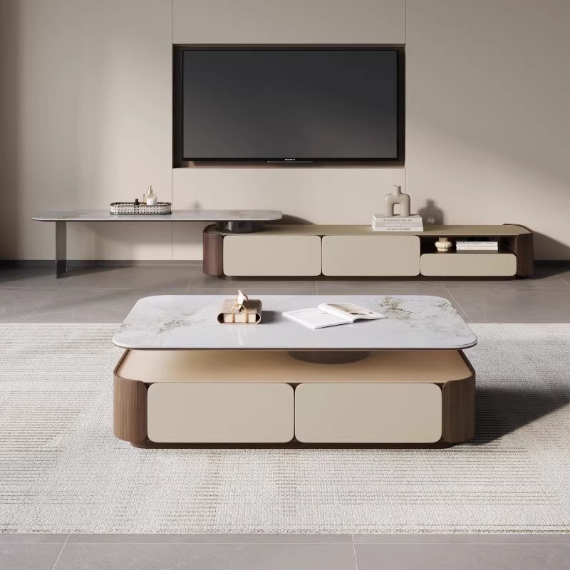 モダンなイタリアのシンプルな回転式コーヒーテーブル小さなリビングルーム長方形の岩板無垢材コーヒーテーブルテレビキャビネットの組み合わせ