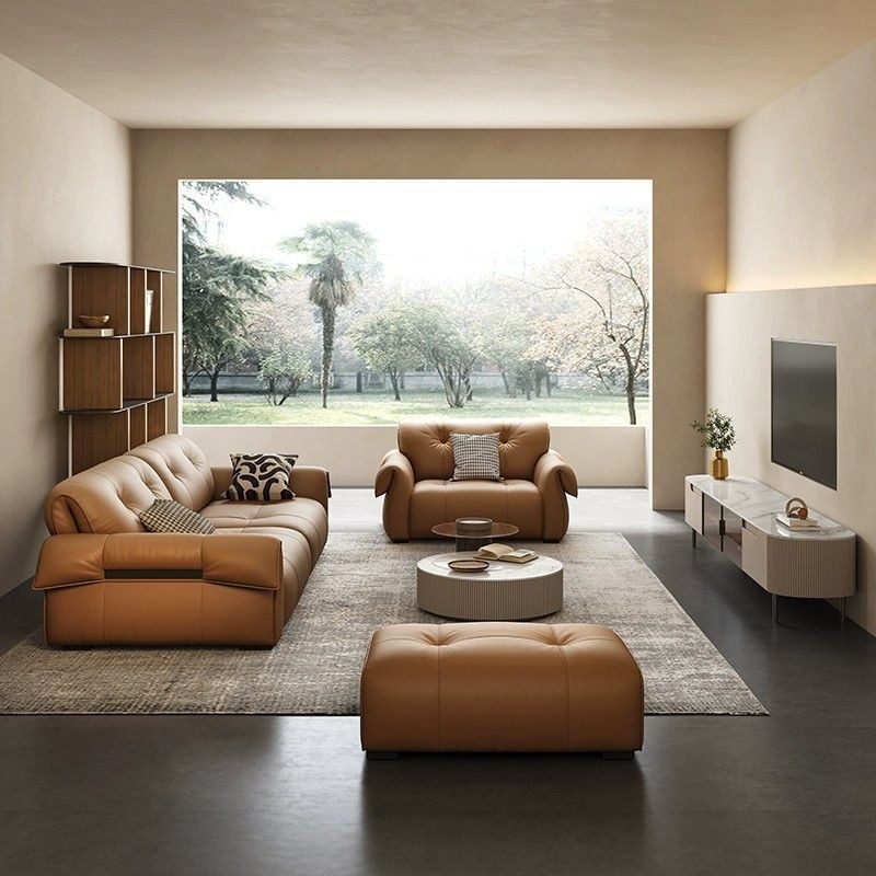 本革のソファーの客間の新型の軽くて豪華な頭層の牛革はまっすぐにサイズの小さい部屋型を並べて簡単に現代の皮のソファーを作ります。