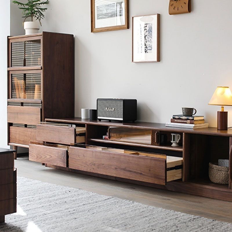 無垢材テレビキャビネットウォールナット色の小さなアパートローキャビネット北欧多機能リビングルーム収納ロッカーログオーディオビジュアルキャビネット