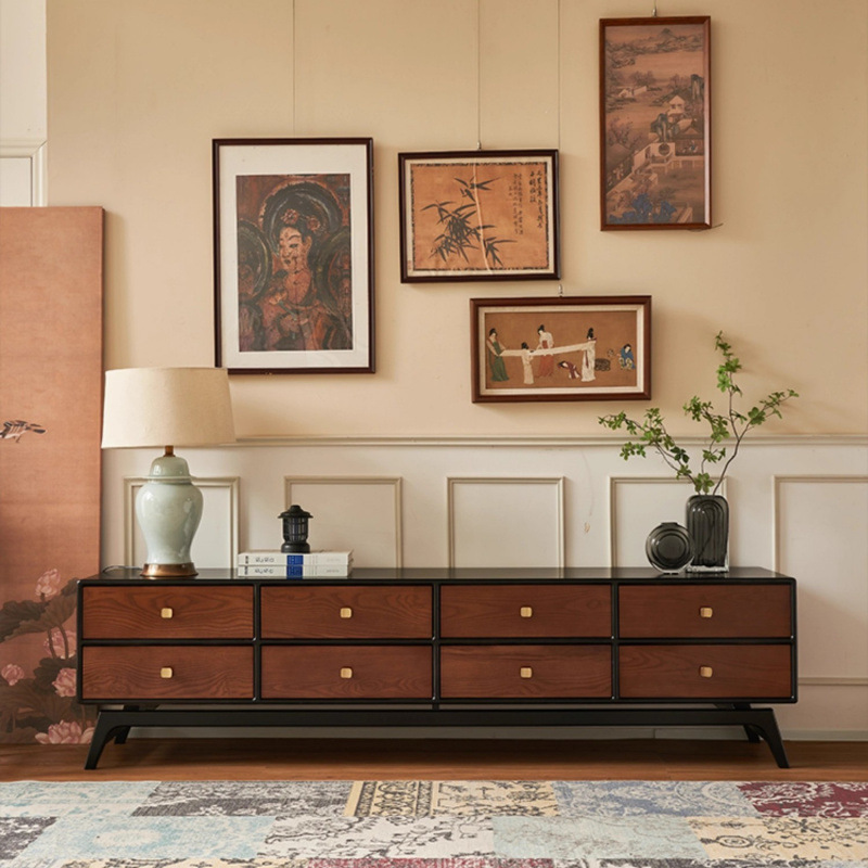 フレンチレトロ無垢材テレビキャビネットホームリビングルーム収納ロッカーナンヤンスタイルフロア引き出しコントラストカラーオーディオビジュアルキャビネット