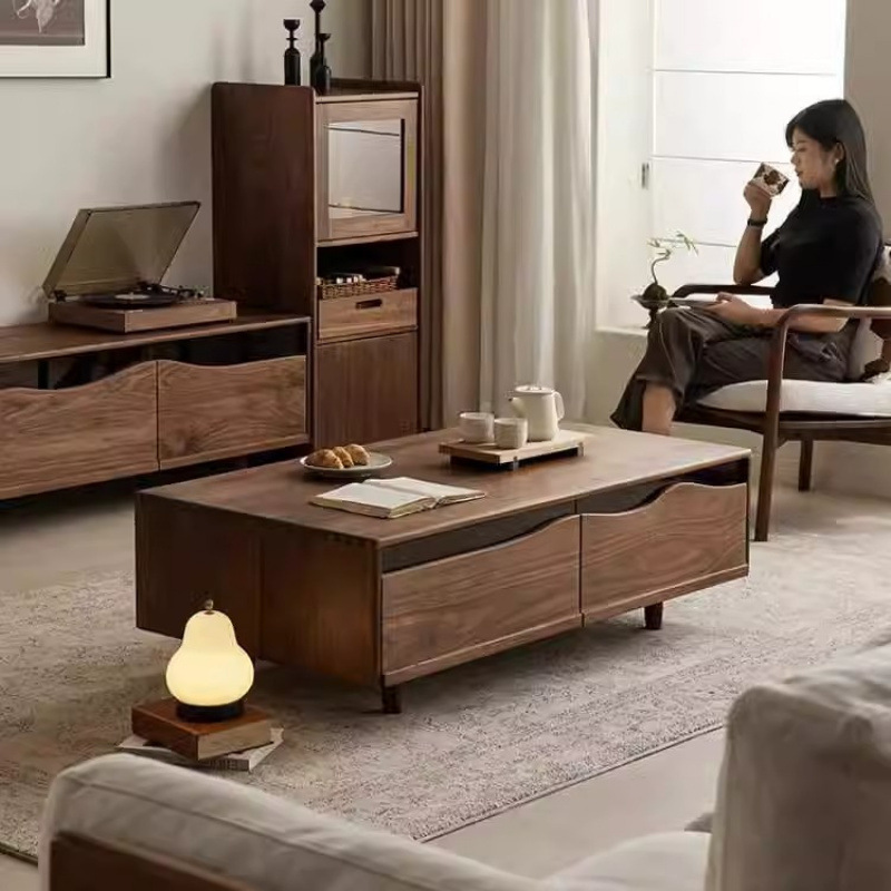 北米黒胡桃木テレビキャビネット茶卓セットリビングルーム家庭用シンプルで贅沢な高級感実木茶卓