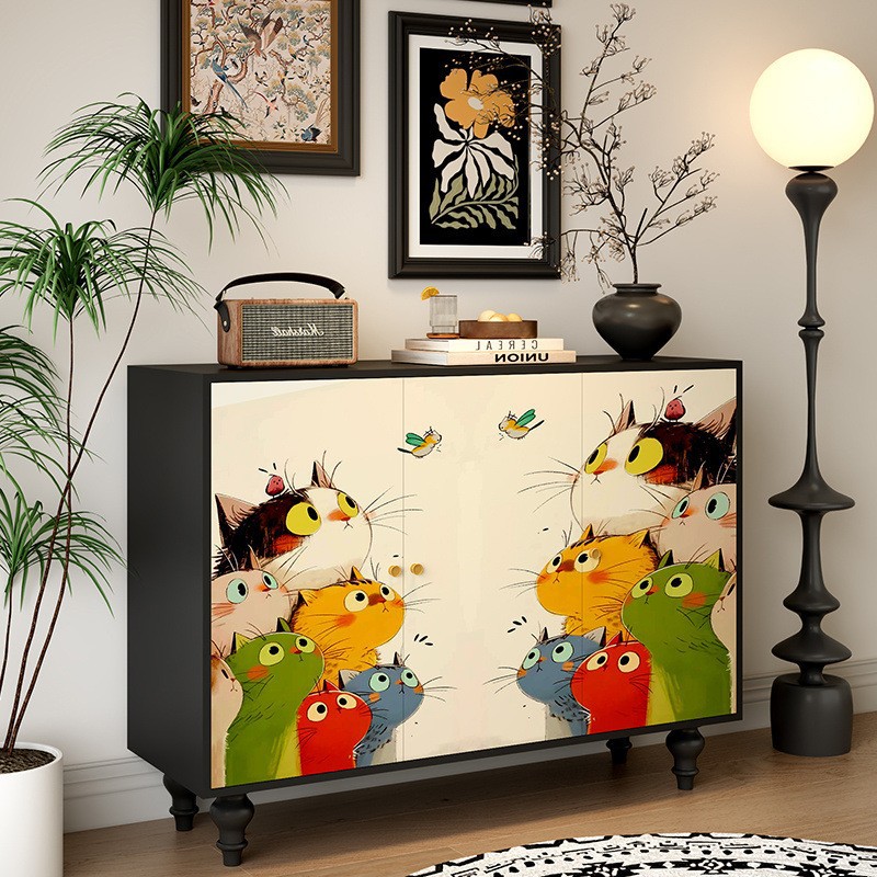 無垢材フレンチアブストラクトアート玄関キャビネット塗装サイドボードリビングルームB&B収納キャビネット寝室収納キャビネット靴キャビネット