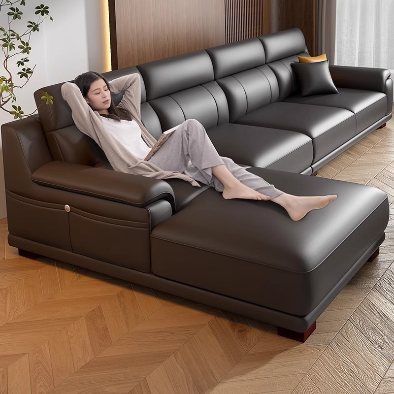 Aiweiqi モダンシンプルな長椅子ストレートヘッド層牛革ソファリビングルーム大型ライト高級組み合わせレザーソファ
