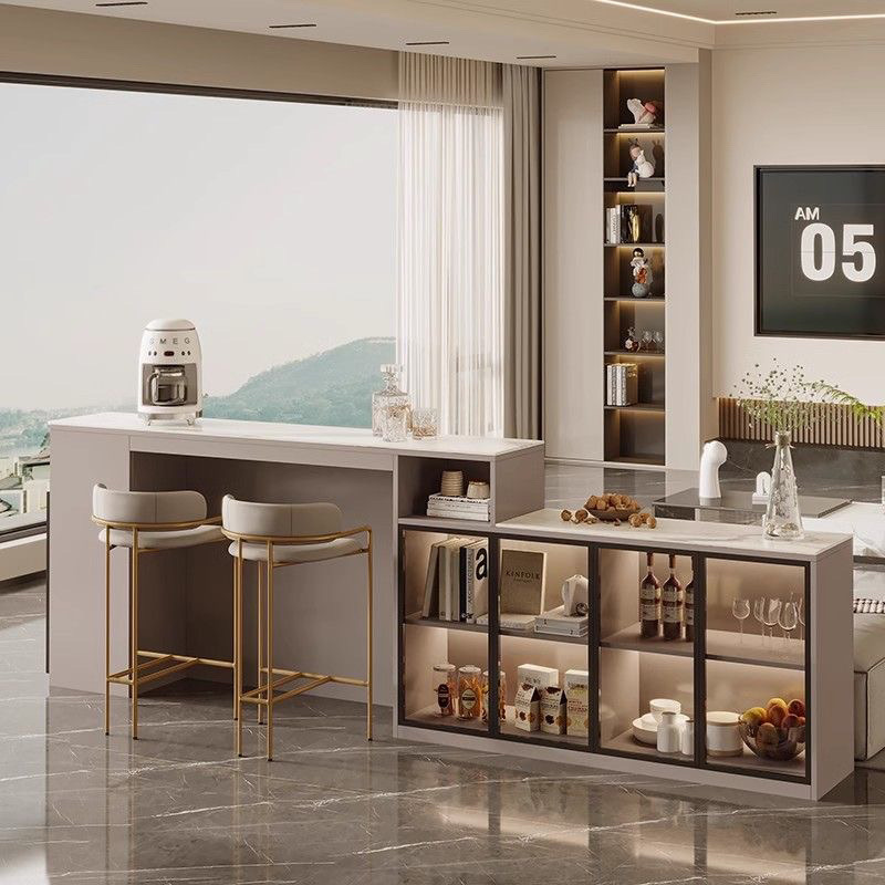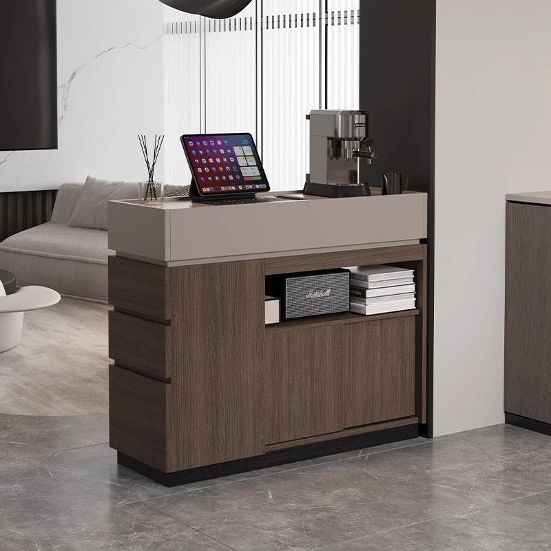 岩板バーの実木のテーブルの家庭用の一体式のサイドキャビネットのリビングルームは壁の酒のキャビネットのソファーの背もたれのキャビネットに寄りかかって仕切ります。