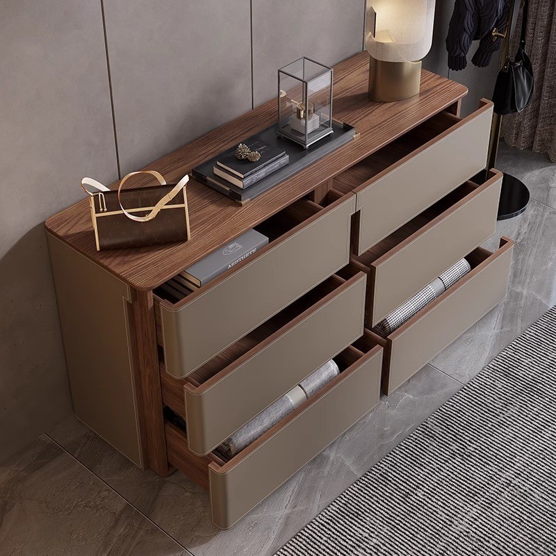 暖かいホーム6引き出しキャビネット、ハイテレビキャビネット、モダンなサドルレザーサイドボード、ベッドエンド収納、無垢材の寝室サイドキャビネット