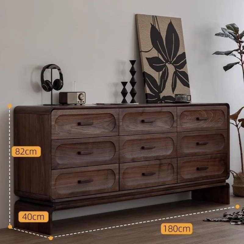 無垢材北欧レトロブラックウォールナットカラー収納9杯キャビネット和風シンプルな寝室リビングルーム収納引き出し新しいスタイル