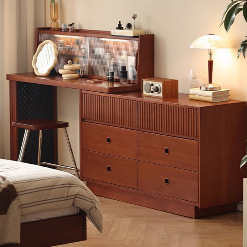 新しい家庭用レトロ中世無垢材化粧テーブルチェストドレッシングテーブルオールインワンキャビネット小さなアパートの寝室のベッドサイドコーナー
