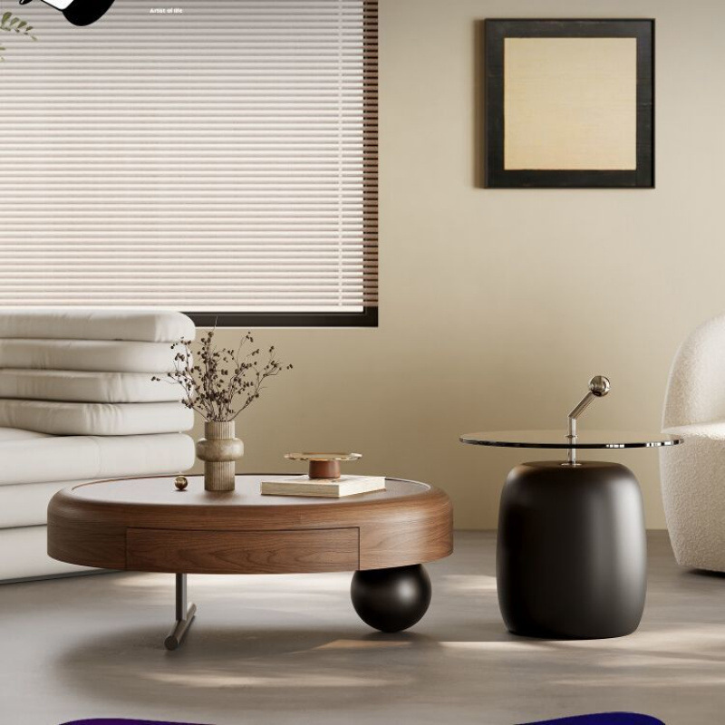 イタリアの新しいスタイルのライトラグジュアリーアンティークスタイルのシンプルなデザイナー無垢材ホームラウンドコーヒーテーブル小さなアパートハイエンドクリエイティブリビングルーム
