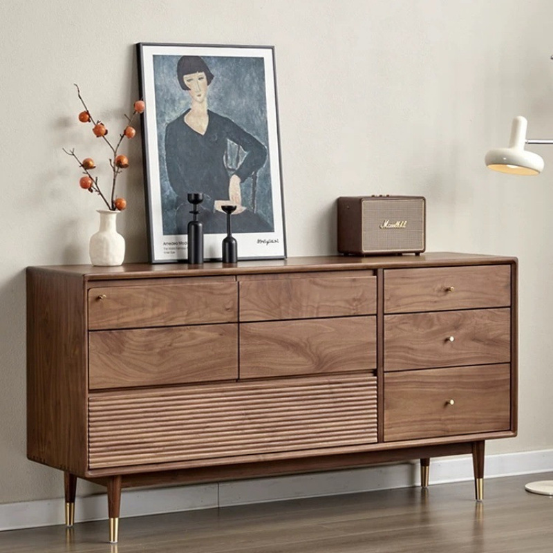北米産ウォールナット無垢材8杯収納引き出しシンプル収納キャビネット北欧リビングルームベッドルームベッドサイド