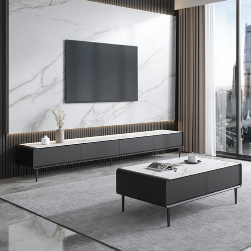 現代のシンプルな岩板テレビの棚のお茶のいくつかの組み合わせの客間の新型のきわめてシンプルな白黒のイタリア式の小さいタイプの物置の壁の棚
