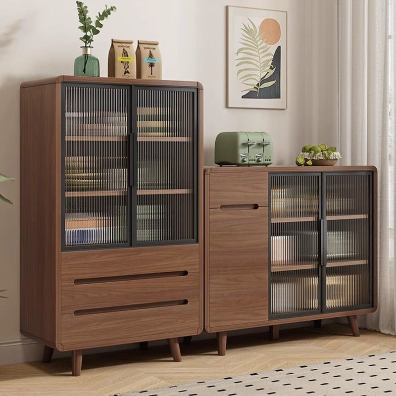 木製のサイドキャビネット一体壁に寄りかかったリビングルームのお茶キャビネット現代北欧食器棚多機能キッチン収納キャビネット