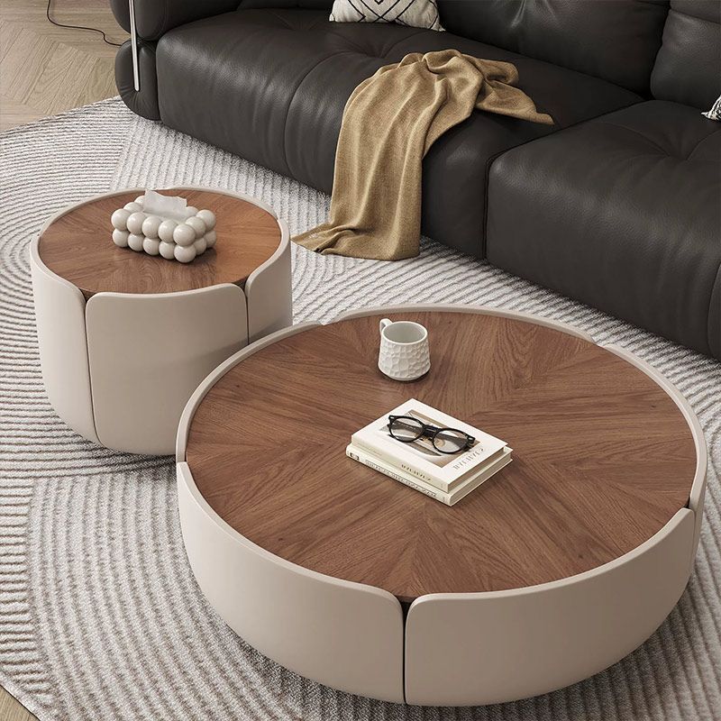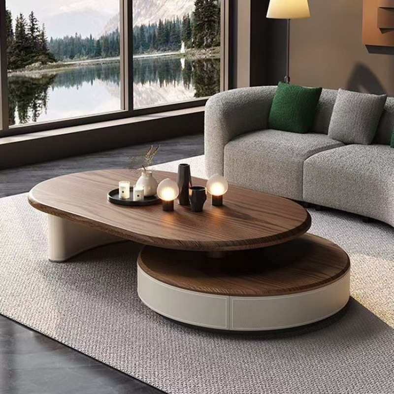 意式の円形の岩板のお茶のいくつかの高級な組み合わせの家庭用の実木のお茶のいくつかの小さい部屋のタイプの軽くて豪華な胡桃の木は簡単で現代的です。