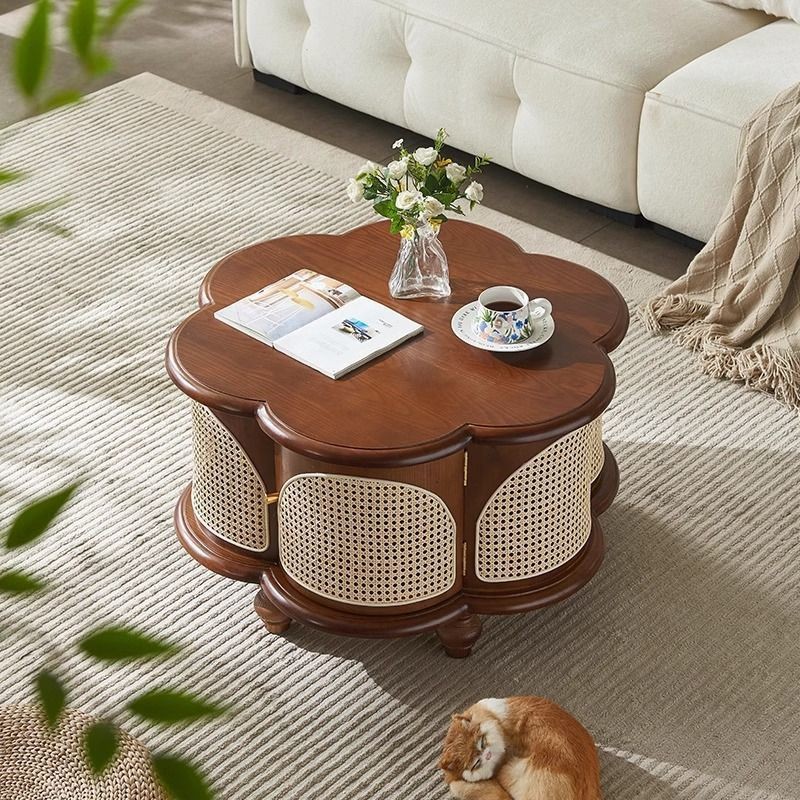 フレンチレトロ籐コーヒーテーブル、小さなアパート、ミッドセンチュリースタイルの小さなティーテーブル、アッシュウッドライト高級リビングルームラウンドテーブル