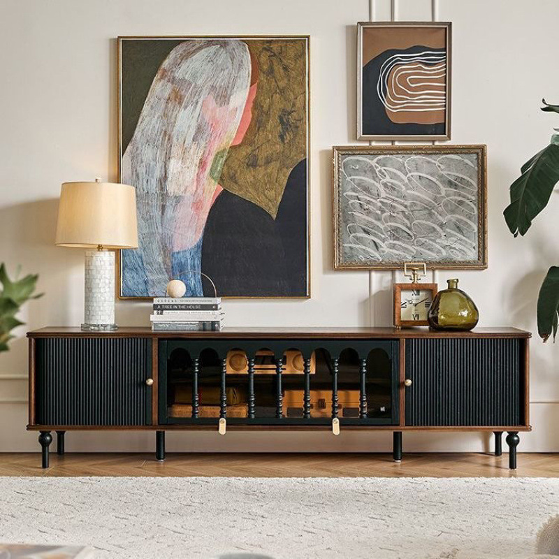フランス式各沃レトロ実木テレビキャビネット黒色アメリカ式小戸型客間ロッカー古風家具