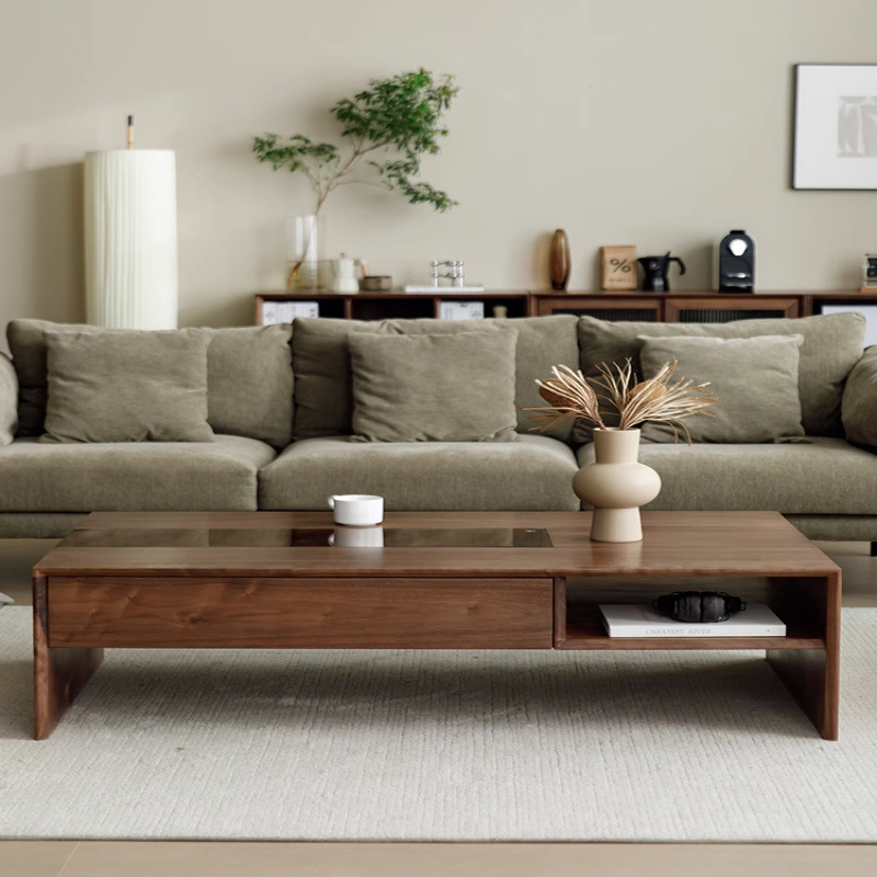全実木茶何テレビキャビネット北米黒胡桃木組み合わせ北欧客間原木現代シンプルコーヒーテーブル