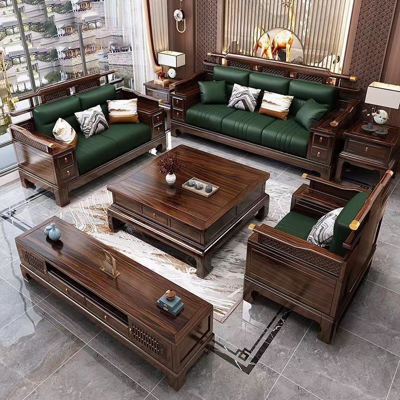 新中国式烏金木実木ソファー現代中国風高級別荘大戸型軽豪華客間模造家具