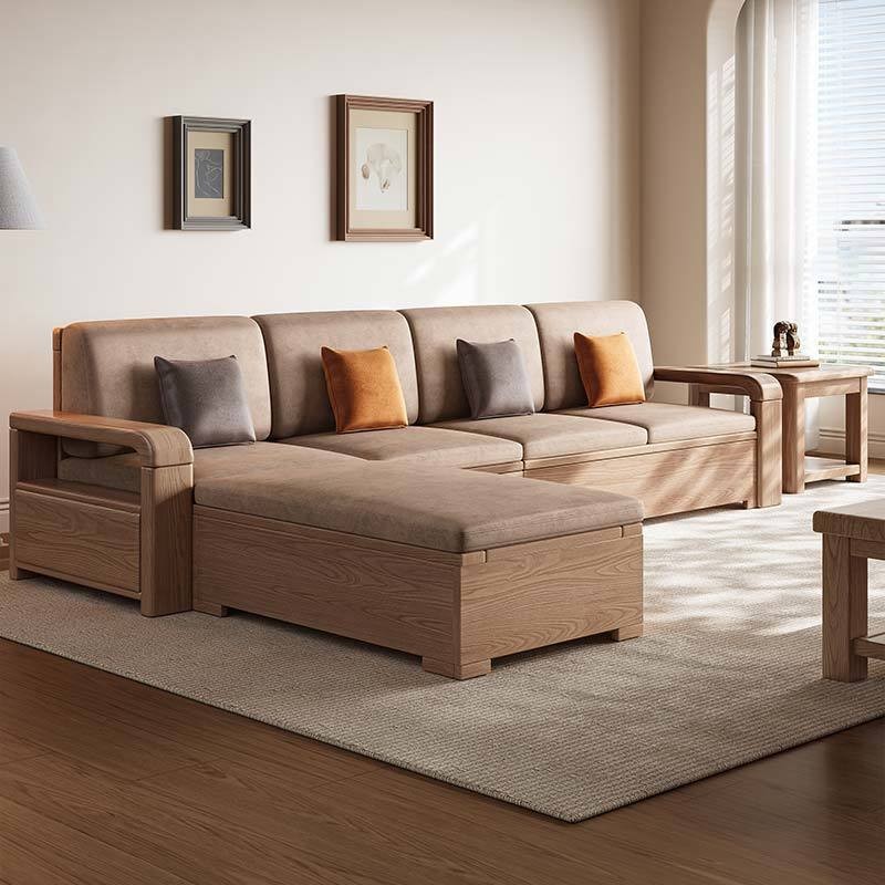 家庭用白蝋木色実木ソファセット北欧風リビングルーム家庭用冬夏両用小戸型収納ソファ