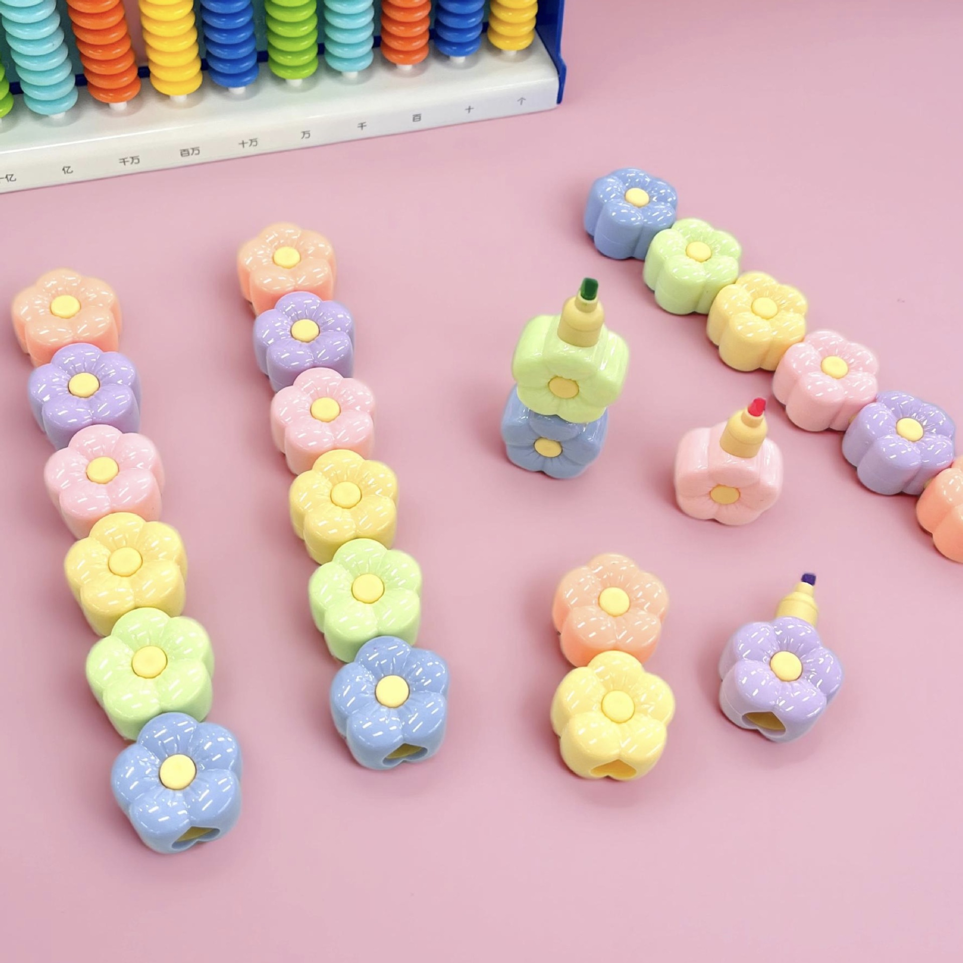 創意的なアニメの蛍光ペンの6色のセットは多く花の形のマーカーのペンを重ねます。