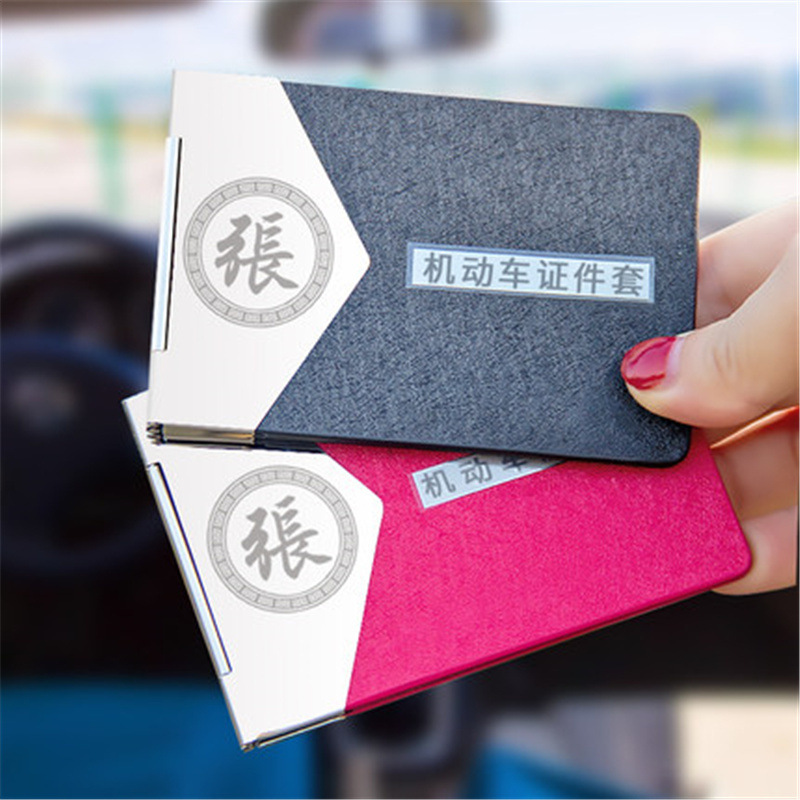 自動車運転免許証カバー革カードカバー多機能二合一革カバー金属個性名前証明セット