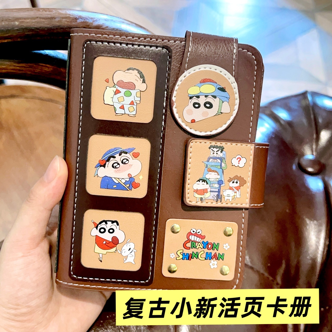 レトロクレヨンしんちゃん a7 取り外し可能な磁気バックルルーズリーフブックフルカラーページカードブックレザーポータブルノートブックカラーページブック