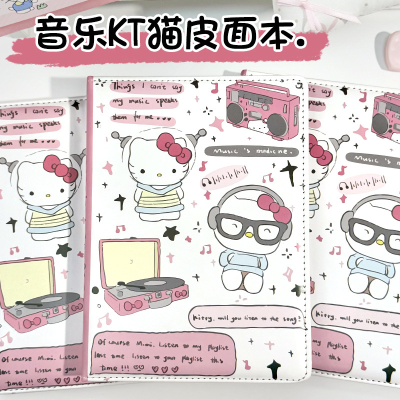 音楽kt猫a5カラーページノート皮面本サンリオKitty皮質手帳少女心手帳