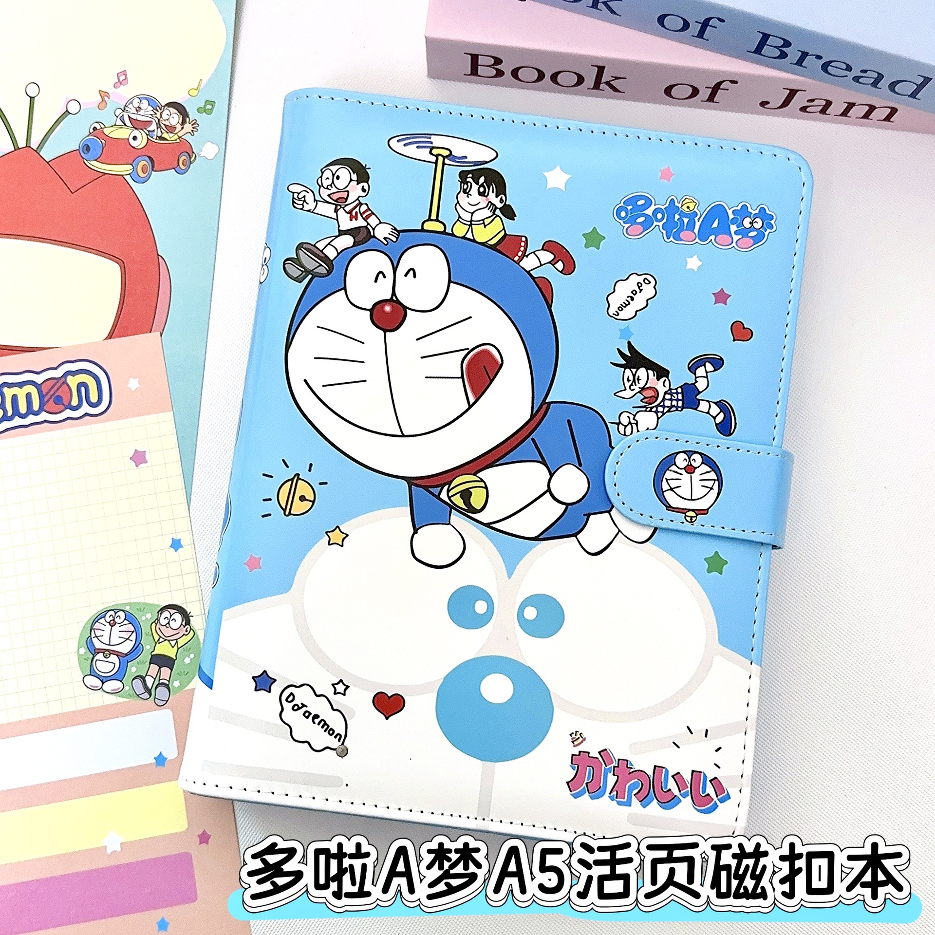 a5 ドラえもん マグネットバックル ルーズリーフブック 学生ハンドブック カードブック フルカラー 取り外し可能なメモ帳 ジングルキャット カラーページブック