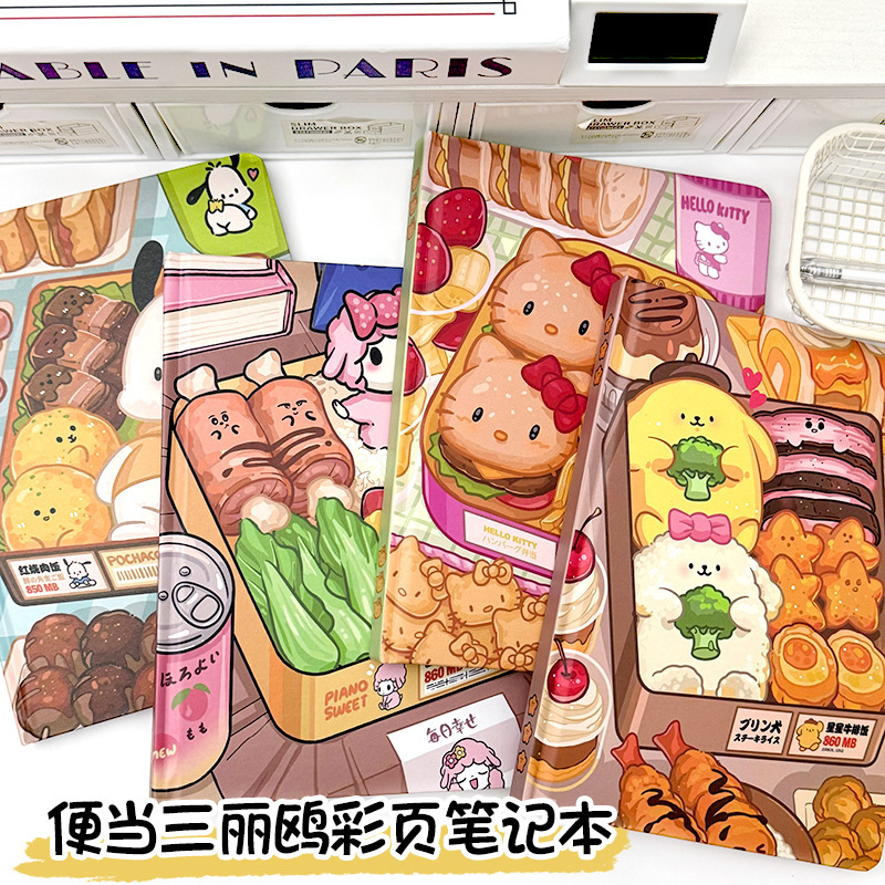 グルメ弁当 サンリオ A5ノート カラフルページ ハードカバー 厚手手帳 KT猫 学生向け 日韓風手帳