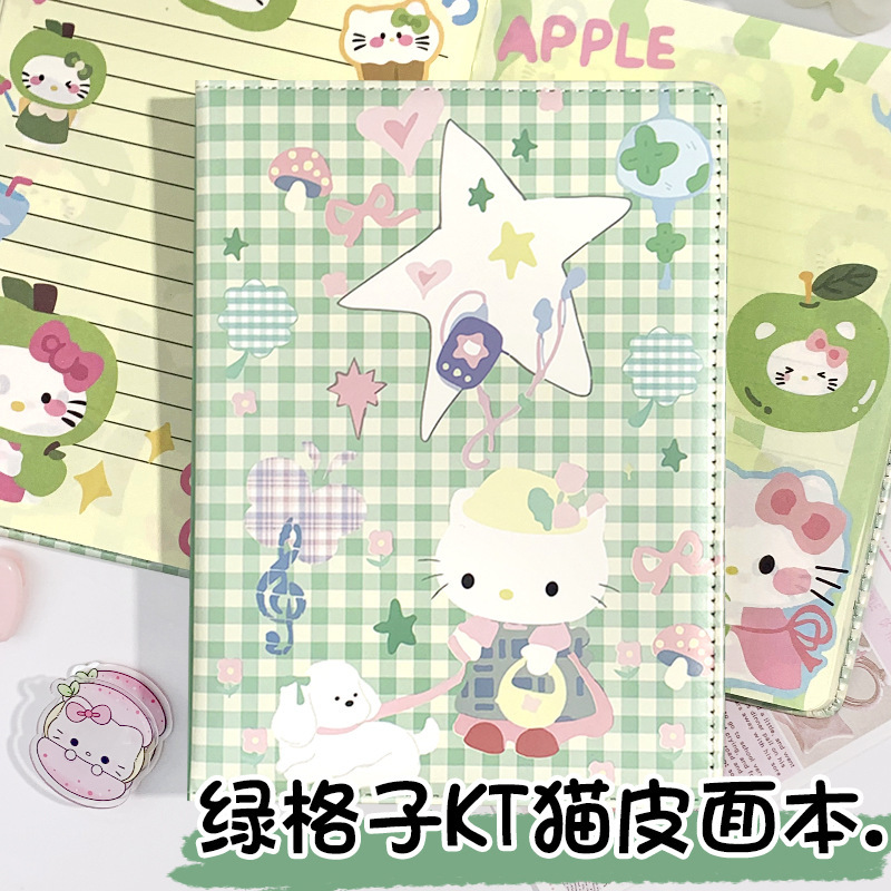 新しいグリーンチェック柄 KT 猫 A5 フルカラーページノートブックニッチ高価値レザー学生かわいいハンドブック日記