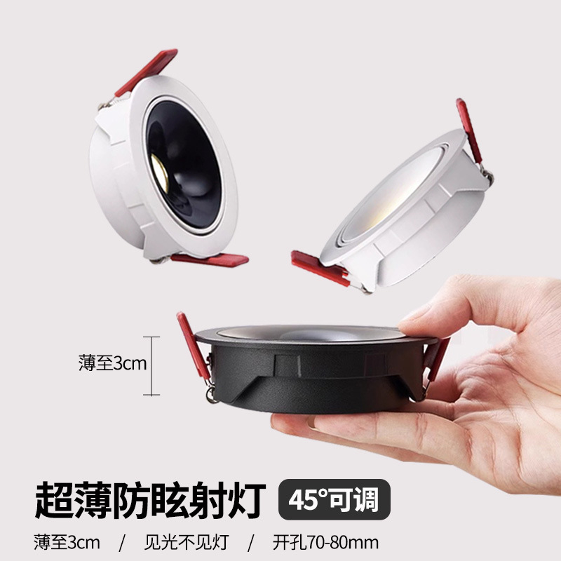 低い吊り天井客間灯家庭用客間通路75mm穴開け角度7W牛眼穴灯超薄防眩暈灯