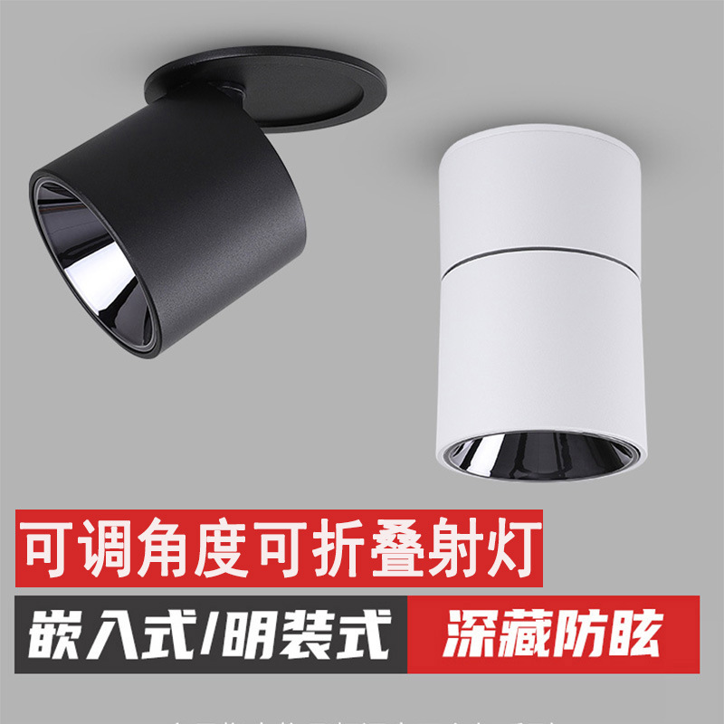 Led明装回転cobスポットライト折り畳み防眩暈天井式スポットライト客間背景壁穴なしスポットライト