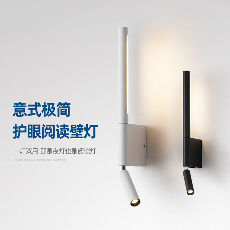 寝室ベッドサイドランプ北欧極簡ホテル民宿書斎読書灯スイッチ付き回転可能led長尺壁灯