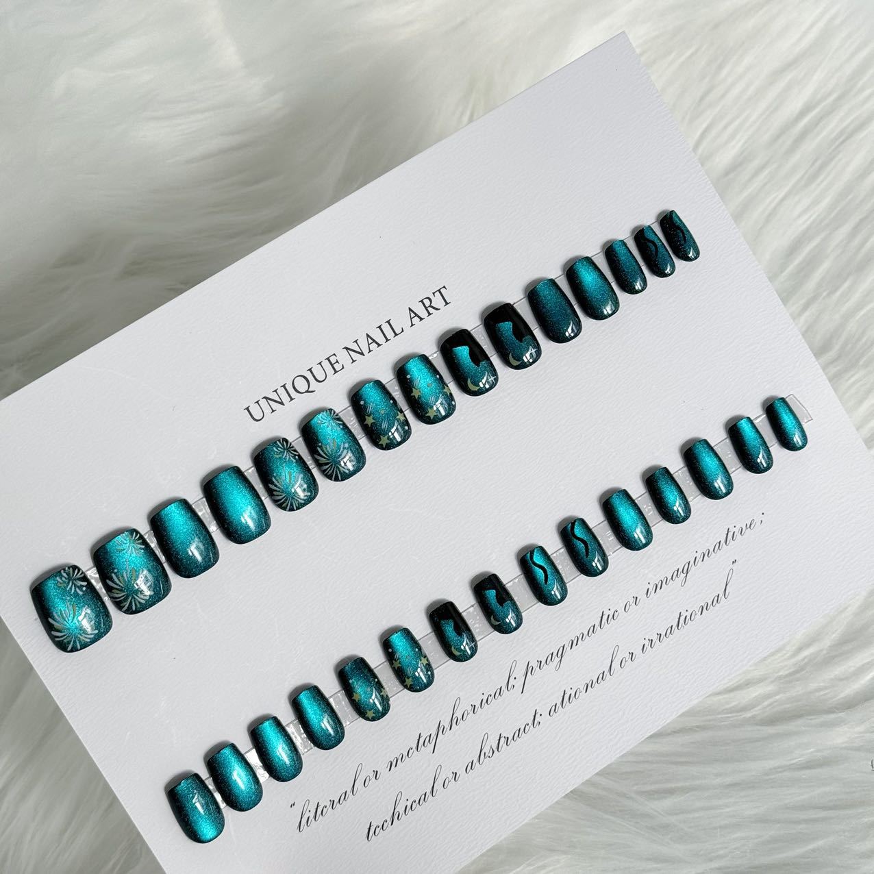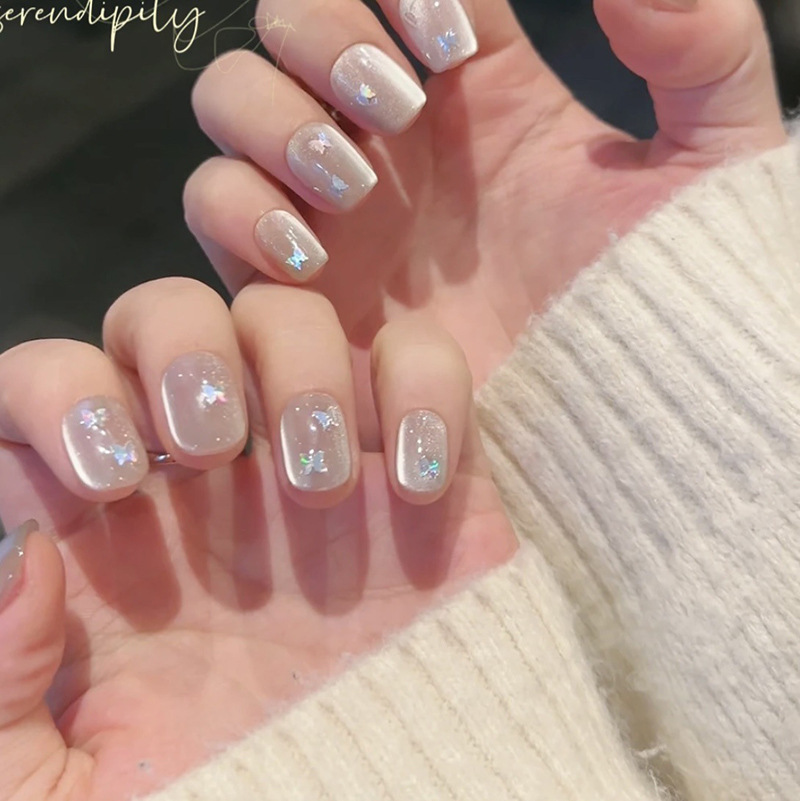 2025年新款手工款穿戴美甲季猫眼蝴蝶中长短款风格美甲可拆卸