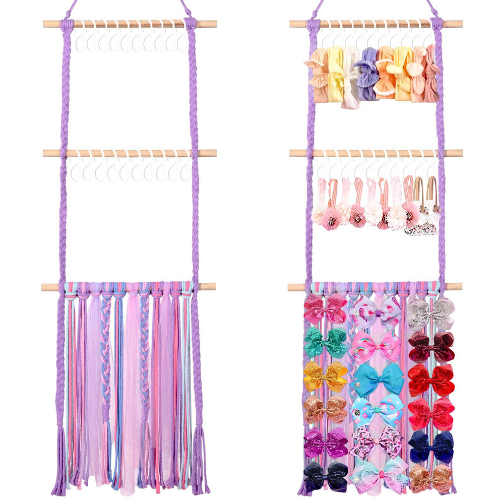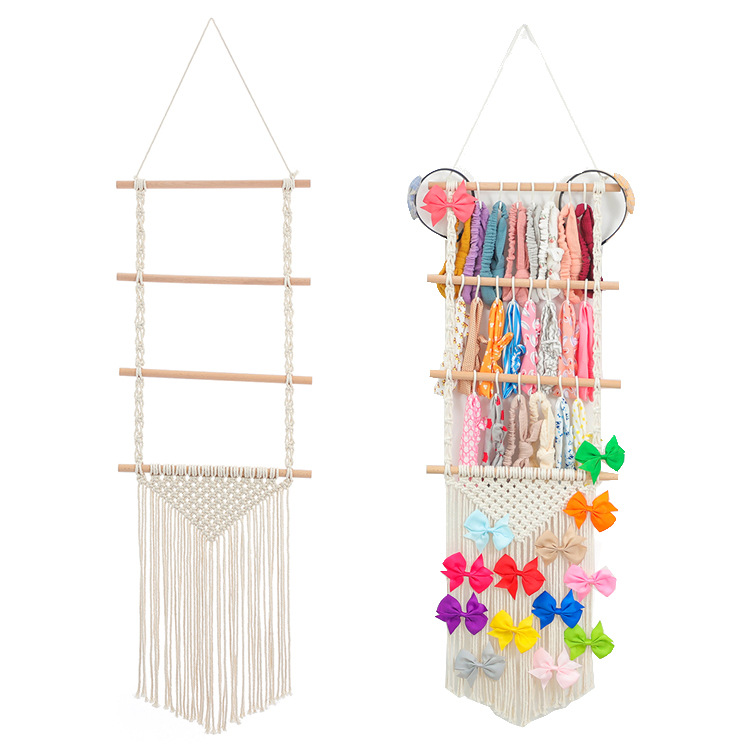 ボヘミアン風人工編みヘアアクセサリーヘアクリップ綿紐収納棚タペストリーフリンジホーム壁掛飾り